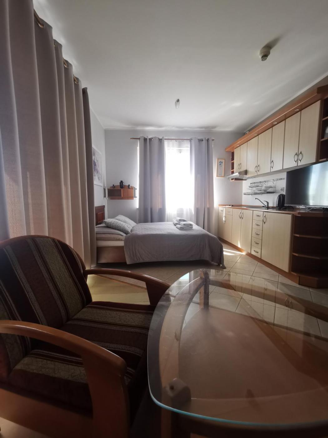 Apartament z 1 sypialnią. Boasting a private entrance, this apartment also includes 1 bedroom, a seating area and 1 bathroom with a walk-in shower and a hairdryer. A kitchen fitted with a stovetop, a refrigerator and a tea and coffee maker is available for cooking and storing food. Featuring a terrace with sea views, this apartment also offers a washing machine and a flat-screen TV. The unit has 2 beds. Apartament - 4 osobowy. Powierzchnia pokoju ok.: 27 mkw.